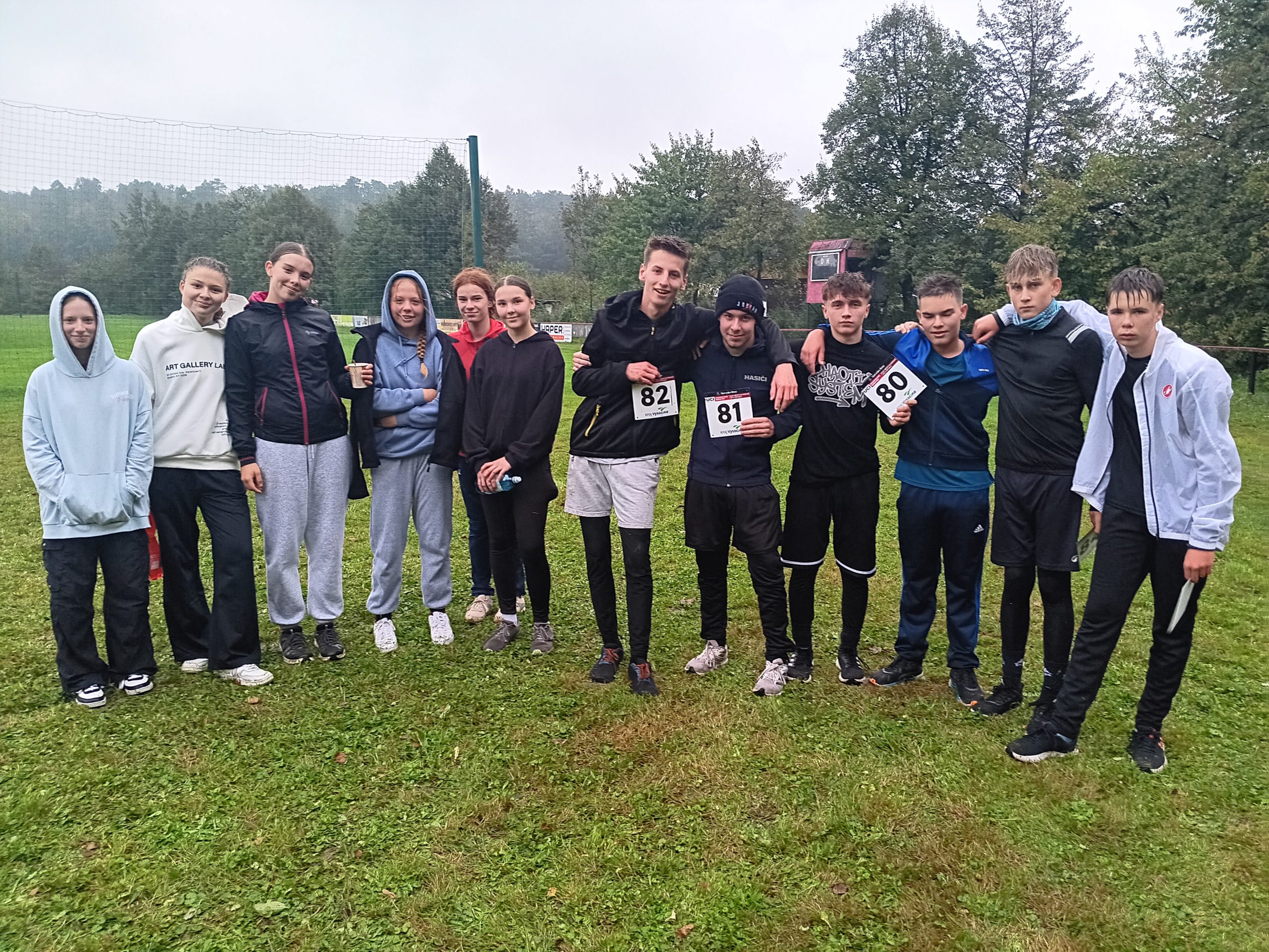 Ve čtvrtek 25. 09. 2025 se zúčastnili vybraní žáci z 8. A a 9. A naší školy sportovní soutěže – závodu v přespolním běhu, který se konal v Bystřici pod Hostýnem. Jeho organizátorem byla ZŠ Bratrství. Tento tradiční závod se koná již 28 let a má své kouzlo. Ve velké většině ročníků bylo vždy krásné, podzimní počasí babího léta. Tentokrát nám však počasí vůbec nepřálo a kromě toho, že neustále pršelo, bylo chladné a nevlídné klima. Závod musel být z tohoto důvodu mírně korigován a všichni účastníci, mokří a promrzlí, ho bravurně zvládli. Vždyť právě takovéto okamžiky nejen otužují, ale také utužují každého jedince. Naši žáci se svého úkolu – reprezentovat školu, zhostili na výbornou. Přece reprezentovat třeba svoji zemi, kraj, okres, město, vesnici nebo školu je velká čest a je to úplně to nejvíc. I když jsme neskončili na předních místech, dokázali jsme se poměřit s těmi nejlepšími sportovci okresu Kroměříž a dokázat si, že to zvládneme, a že na to máme. Chtěli bychom vám moc poděkovat, milé žákyně a milí žáci, za vzornou a důstojnou reprezentaci školy a také za to, že jste to nevzdali. Budeme se těšit na příští ročník!