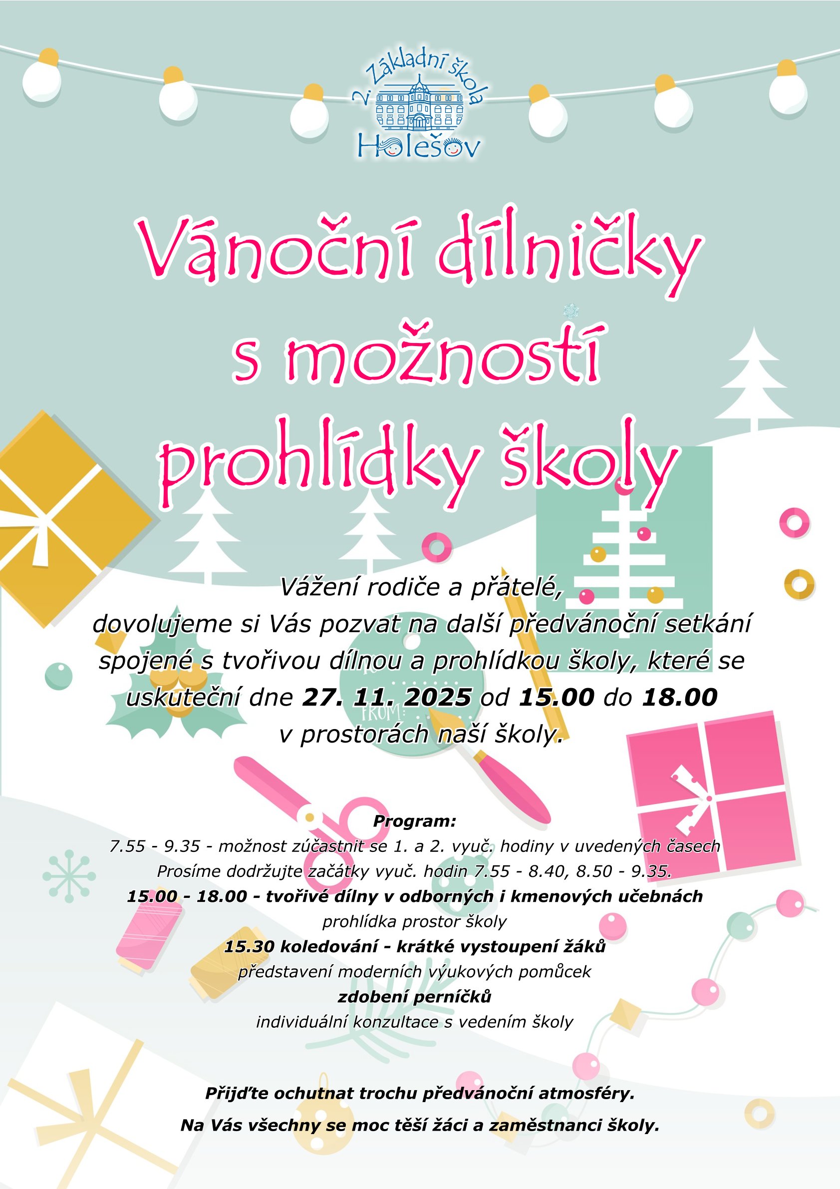 zveme Vás v úterý 25. 11. 2025 na konzultace o prospěchu a chování.