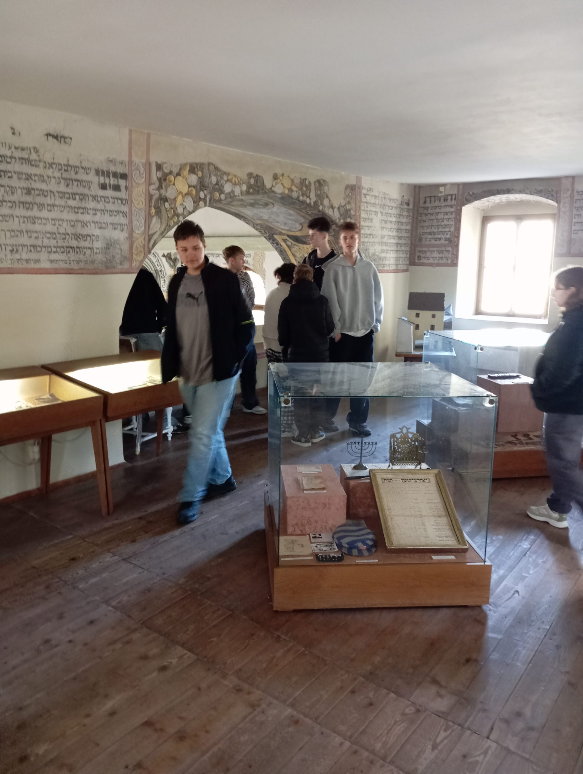 Žáci měli možnost prohlédnout si nejen samotnou modlitebnu, ale i přilehlé prostory s expozicí věnovanou židovským zvykům a tradicím. Největší zájem vzbudily předměty každodenního života, ukázky hebrejských textů – část nám pan průvodce ovládající hebrejštinu přeložil, a příběhy lidí, kteří v Holešově žili před druhou světovou válkou.