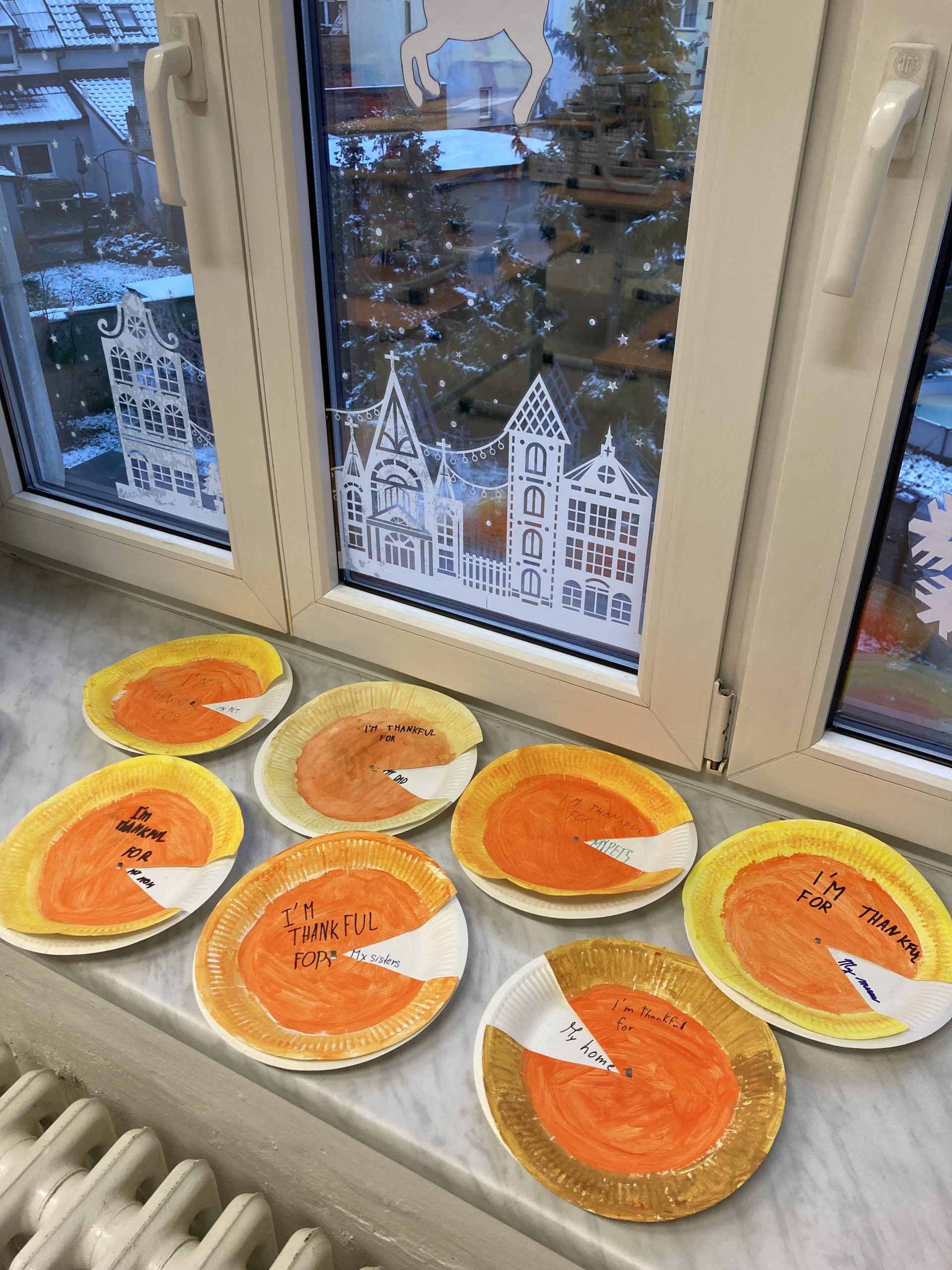 Děti si vyrobily vlastní papírový Pumpkin Pie, typický symbol svátku. Doprostřed napsaly větu “I’m thankful for…” a doplnily, za co jsou vděčné. Objevily se krásné odpovědi jako my parents, pets, life nebo talent.