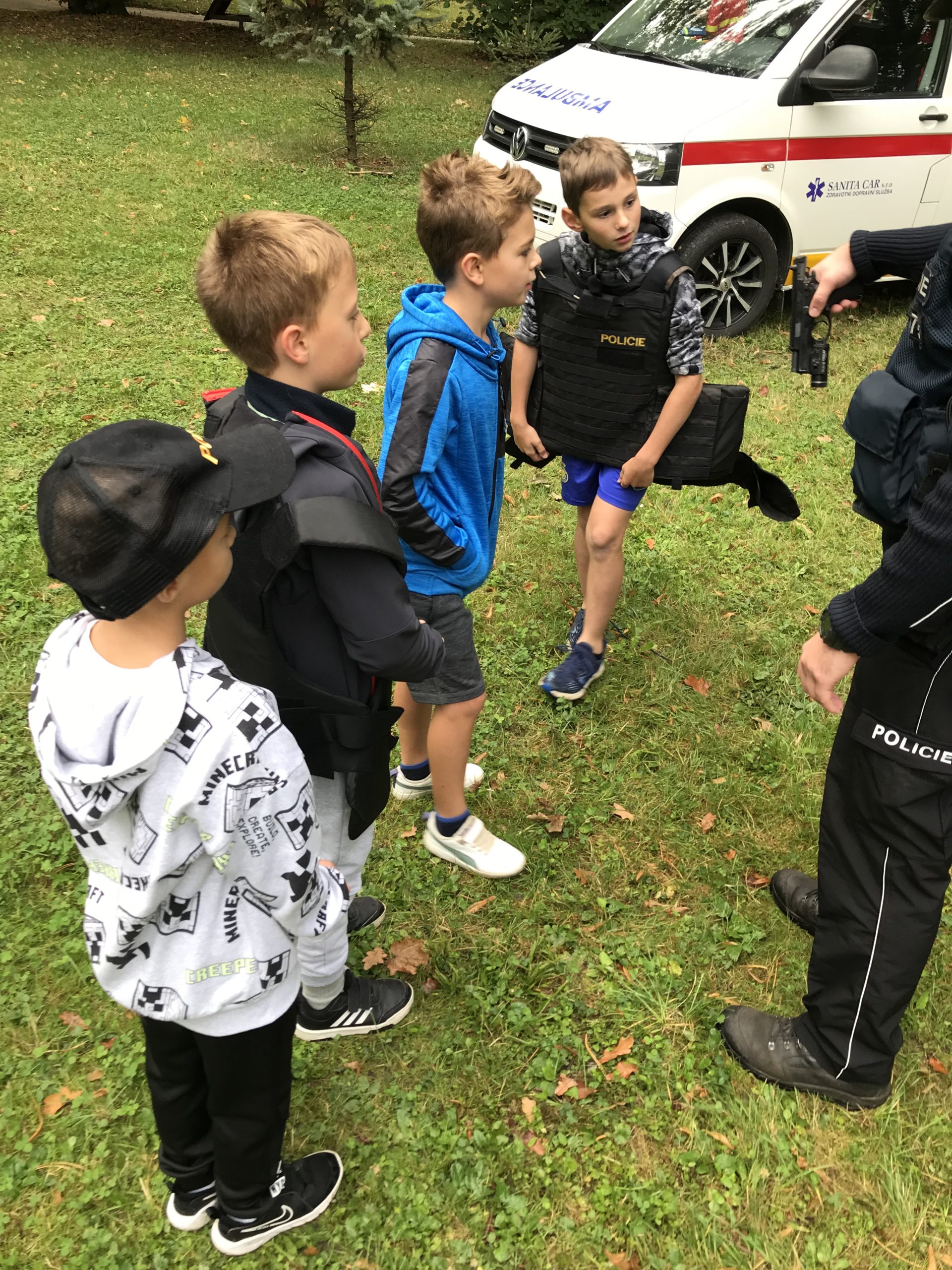 vyzkoušely si různé činnosti. Projely si například jízdu zručnosti na kole a seznámily se s činností dobrovolných hasičů, kteří jim ukázali zásahovou techniku a vybavení. Stanoviště Policie ČR nabídlo možnost posadit se do policejního auta nebo vzít do ruky policejní pistoli či obušek. Strážníci Městské policie Holešov připomněli dětem pravidla bezpečného pohybu po městě. Na dalším stanovišti na děti čekala sanitka, u které jim záchranáři přiblížili, jakým způsobem probíhá zásah při nehodě. Český červený kříž nabídl praktickou ukázku první pomoci a žáci si mohli vyzkoušet první pomoc na resuscitační panně. Nechybělo ani stanoviště Střediska volného času TYMY, díky kterému si děti vyzkoušely jízdu na invalidním vozíku.
