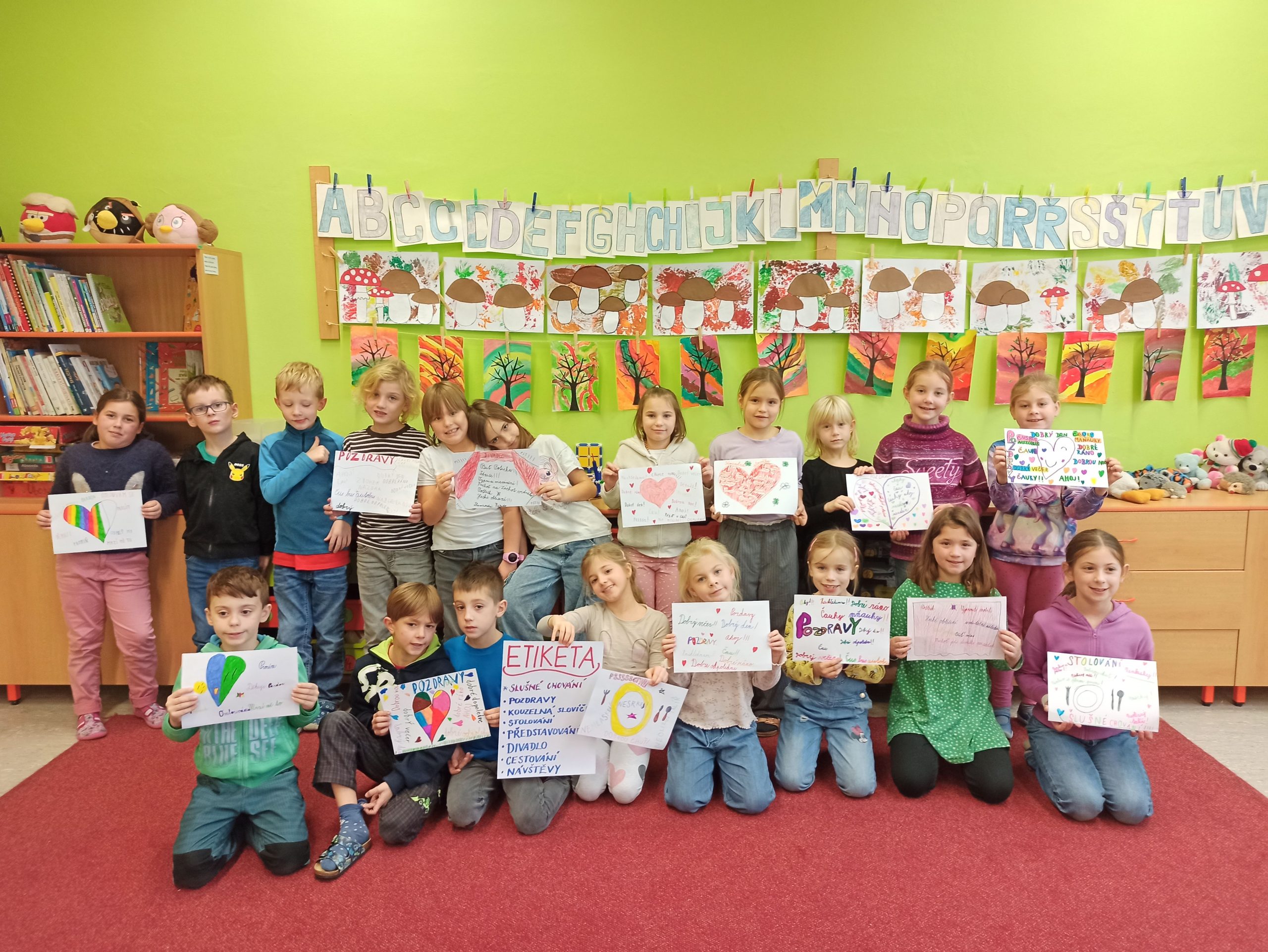 V pátek 14. 11. 2025 proběhl v naší škole projektový půlden s názvem Respekt, slušnost, etiketa. V poslední době jsme často naráželi na to, že někteří žáci zapomínají na respekt k učitelům, starším i k sobě navzájem. Proč je důležité pozdravit, vnímat práva ostatních a chovat se tak, aby svými aktivitami nepřidávali práci druhým. To byly úvodní myšlenky při vzniku projektu. Témata se ale rozvinula do velké šíře především díky kreativitě učitelů i žáků v jednotlivých třídách a skupinách. Na prvním stupni totiž pracovali žáci ve třídě, ale na druhém si mohli předem vybrat skupinu podle zaměření a aktivit. Někteří vyráběli postery, jiní hráli scénky, hledali na internetu nebo trénovali dovednosti ve stolování. Pracovali s různými kartičkami, tvořili pravidla slušného chování. Nebylo cílem jen vysvětlit, co to je respekt a etiketa, ale také proč se máme chovat slušně k sobě navzájem. Převážná většina žáků dokázala svou práci velmi dobře odprezentovat při společném setkání v tělocvičně na závěr akce. Důležité je, aby naši žáci dokázali respekt, slušnost a etiketu využívat i v běžných dnech nejen ve škole, ale i mimo ni.