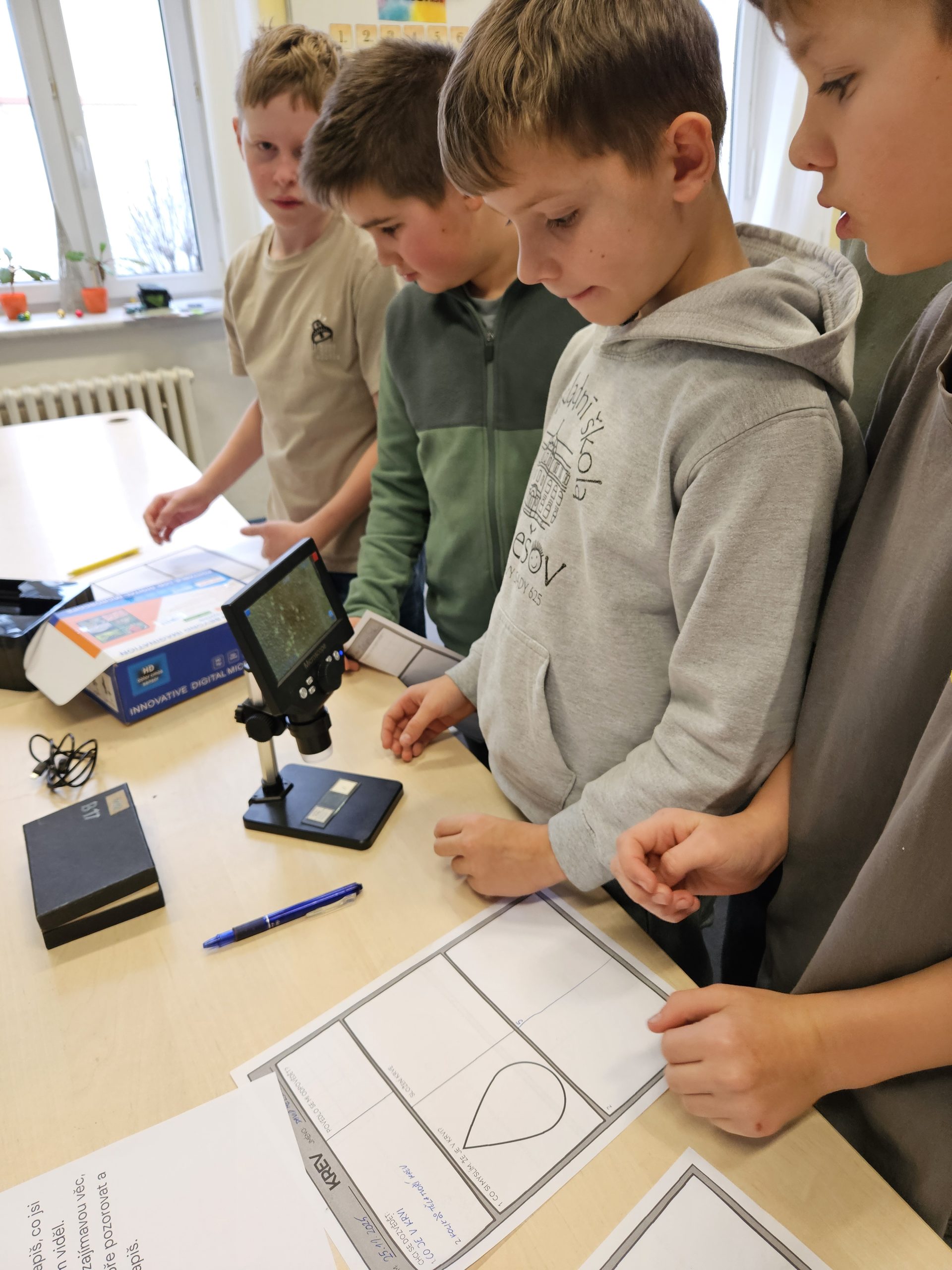 Žáci 5. B se v hodině přírodovědy proměnili v malé badatele. Tématem jejich zkoumání byla lidská krev – její složení, funkce a význam pro lidské tělo. Děti se nejprve seznámily s tím, že krev není jen „červená tekutina“, ale směs různých částic, z nichž každá má svou nezastupitelnou roli. Prošly celkem 6 stanovišť, na kterých se postupně dozvídaly zajímavé i důležité věci o krvi. Na jednom stanovišti si dokonce vyrobily model krve. Nesmělo chybět ani měření tlaku a mikroskopování. Žáci byli ze svých badatelských schopností nadšeni a už se těší na další bádání.